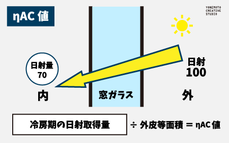 ηAC値とは、夏の強い日差しがどれくらい室内に入り込むかを示す指標です。