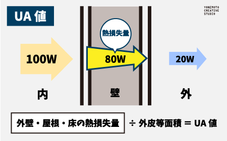 UA値は、家全体からどれくらい熱が出入りしやすいかを示し、