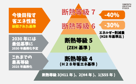 2022年に新等級(5~7)を設け、2025年4月からは断熱等級4以上が義務化されます。