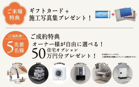 オーナー様が自由に選べる住宅オプション50万円分をプレゼント!